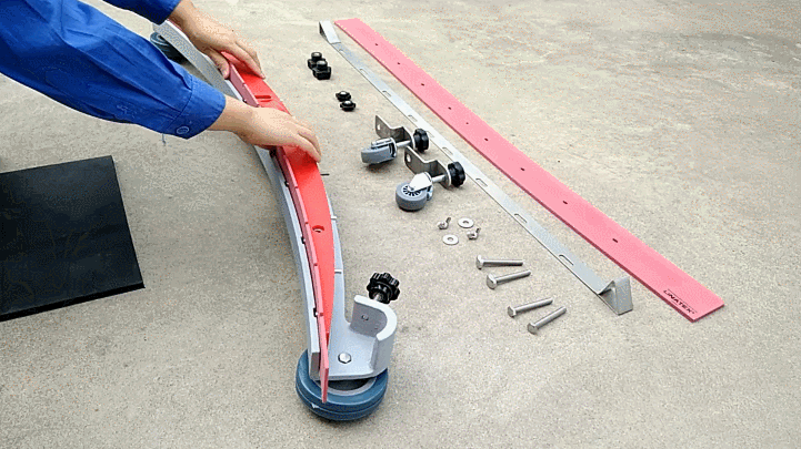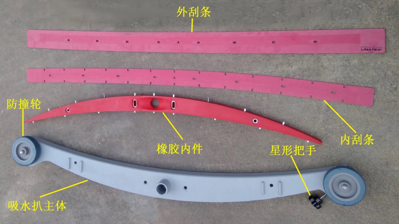 1.安裝內刮條,對準內刮條的孔,一一按進橡膠內件