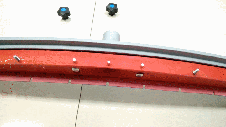 5.安裝壓條,窄邊朝自己,對齊孔,一一按進橡膠內件