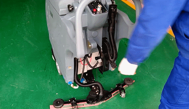 3.踩下刷盤腳踏,往左挪動(dòng)掛好,提升刷盤